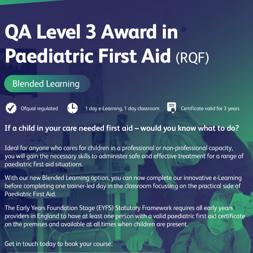 Qualsafe Level 3 Award in Paediatric First Aid (RQF) (Blended)